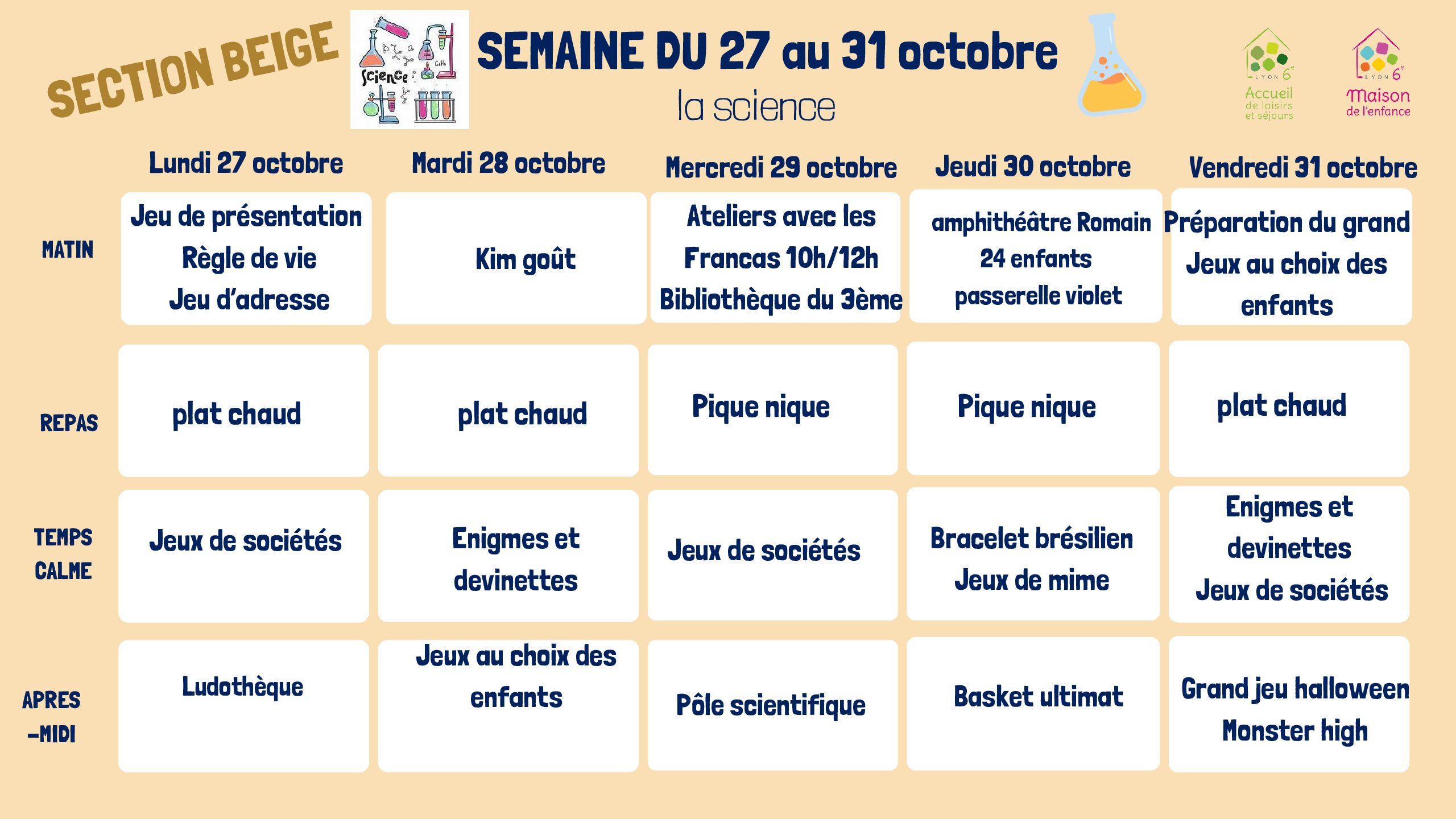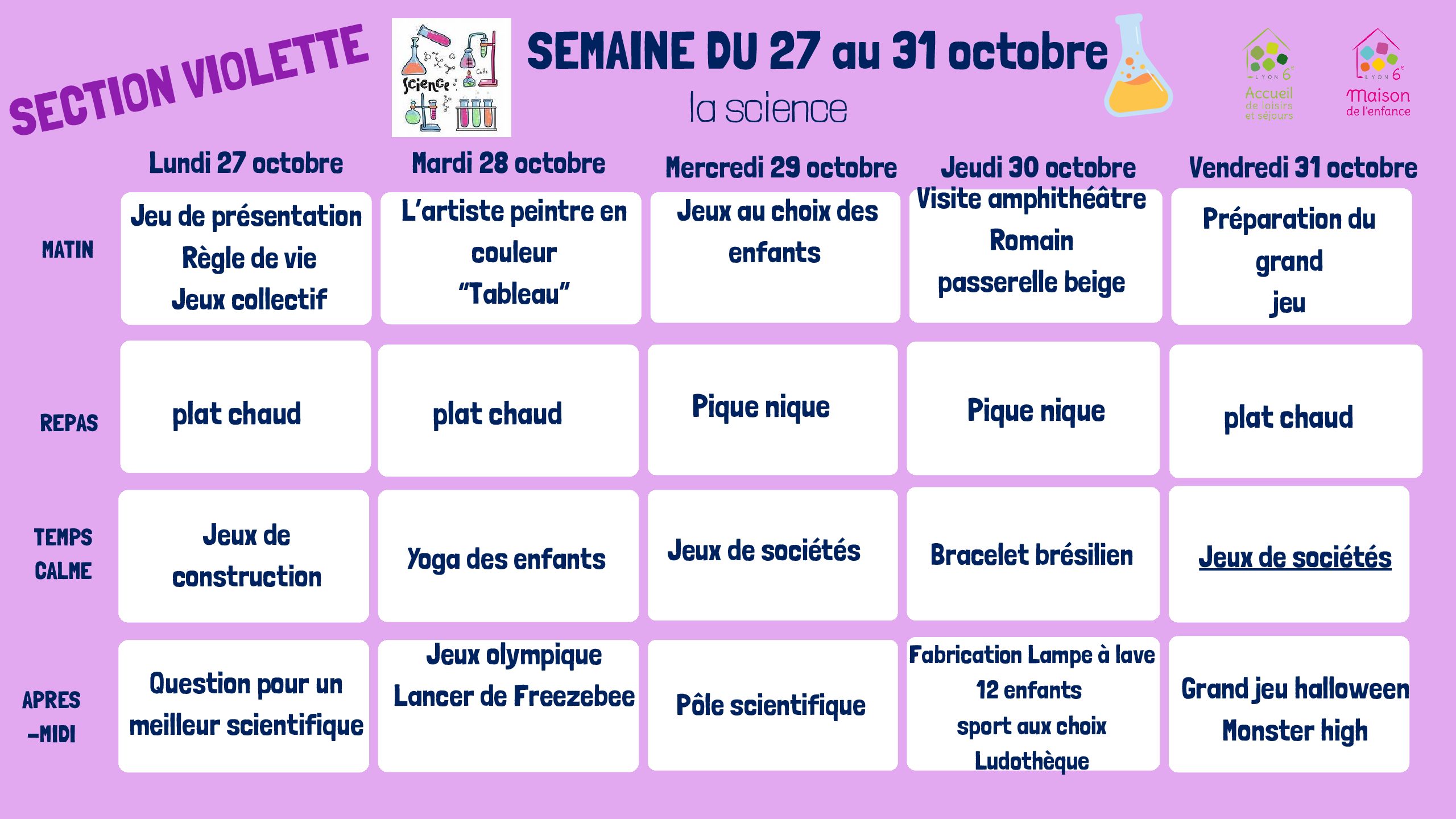 PROGRAMME VACANCES TOUSSAINT SEMAINE 2