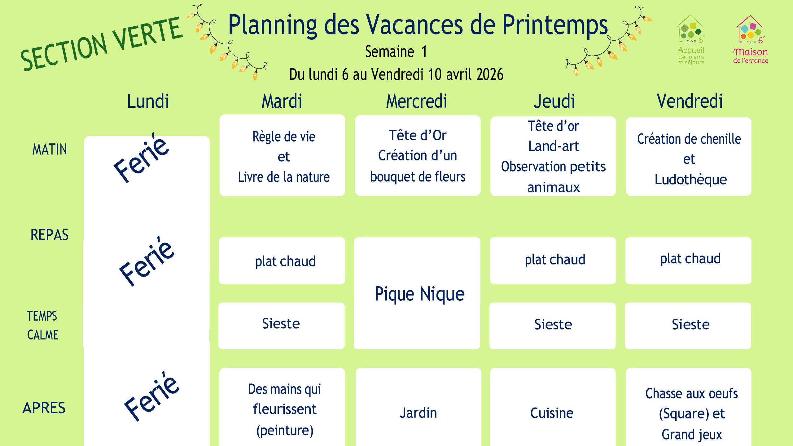 PROGRAMME SEMAINE DU 7 AVRIL AU 10 AVRIL SECTION VERTE (3 ans et plus)