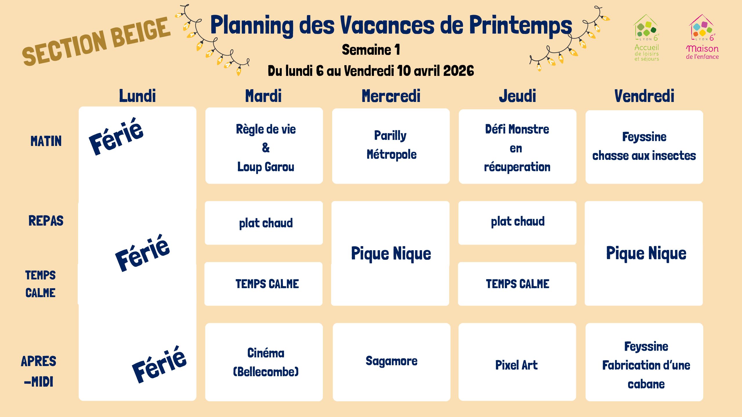 PROGRAMME SEMAINE DU 7 AVRIL AU 10 AVRIL SECTION BEIGE (9 / 13ans )