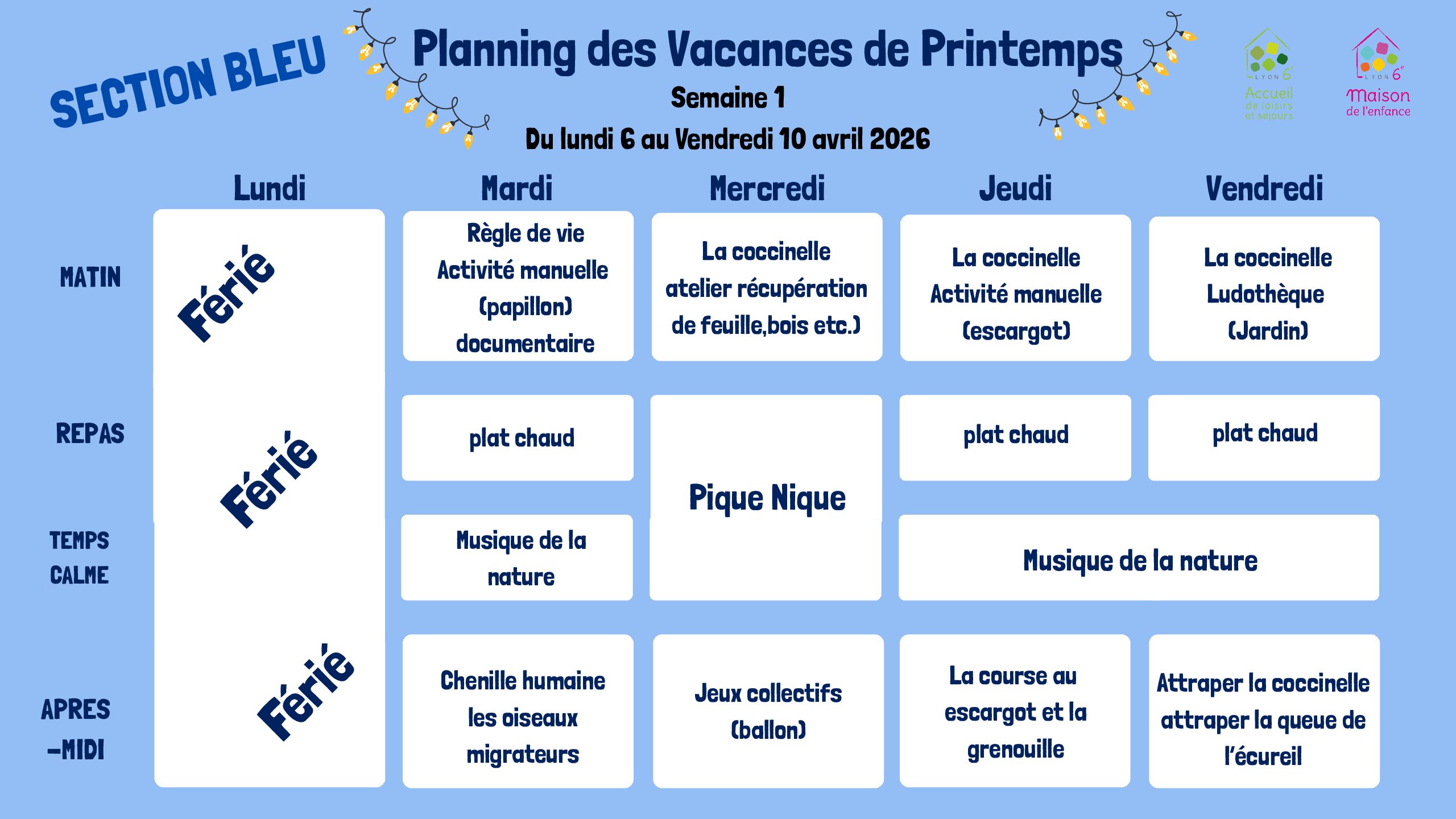 PROGRAMME SEMAINE DU 7 AVRIL AU 10 AVRIL SECTION BLEUE (4 ans et plus)