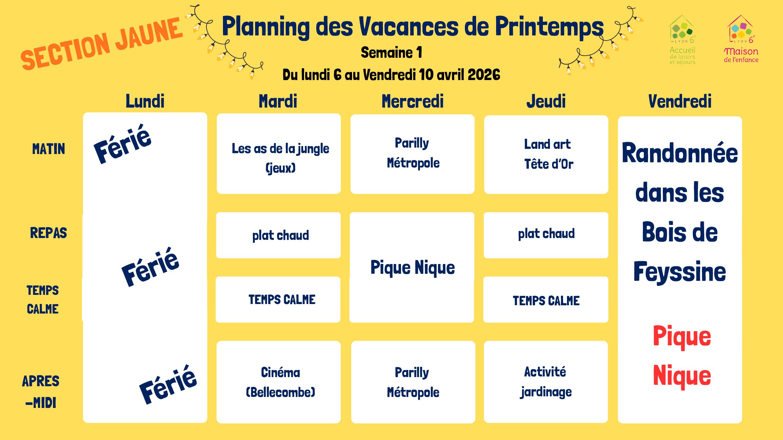 PROGRAMME SEMAINE DU 7 AVRIL AU 10 AVRIL SECTION JAUNE (6 ans et plus)
