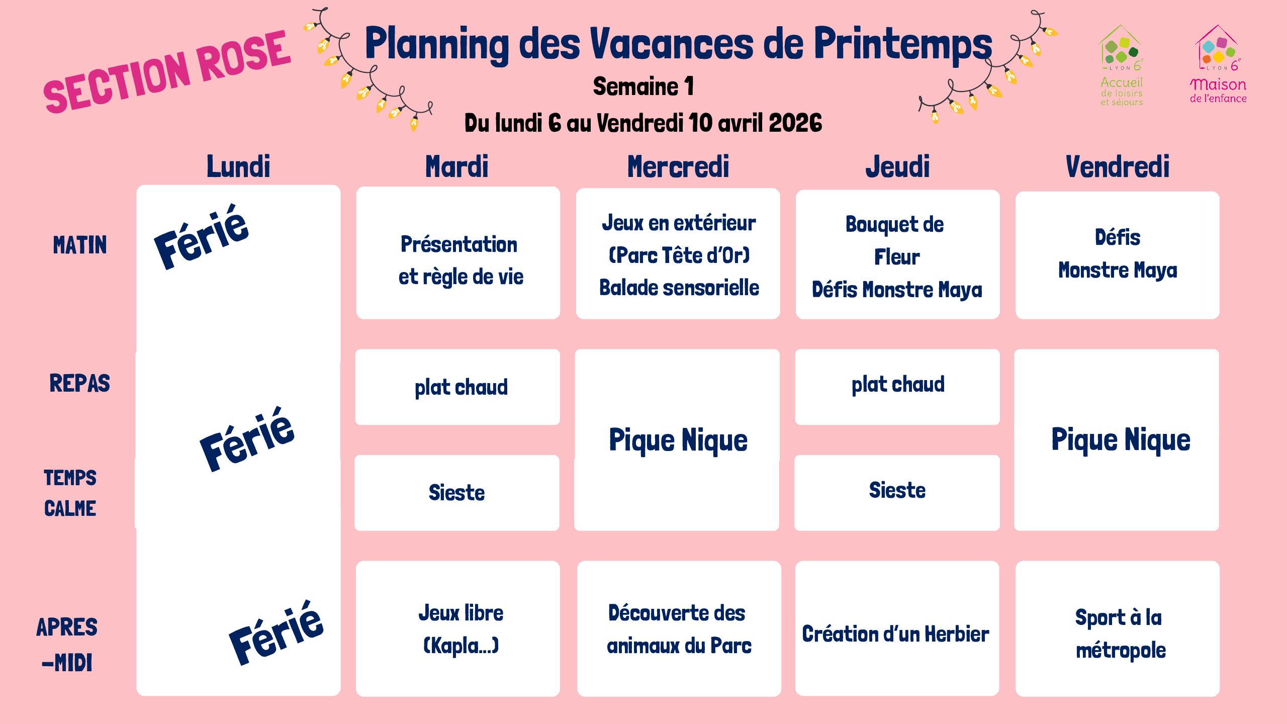 PROGRAMME SEMAINE DU 7 AVRIL AU 10 AVRIL SECTION ROSE (5 ans et plus)
