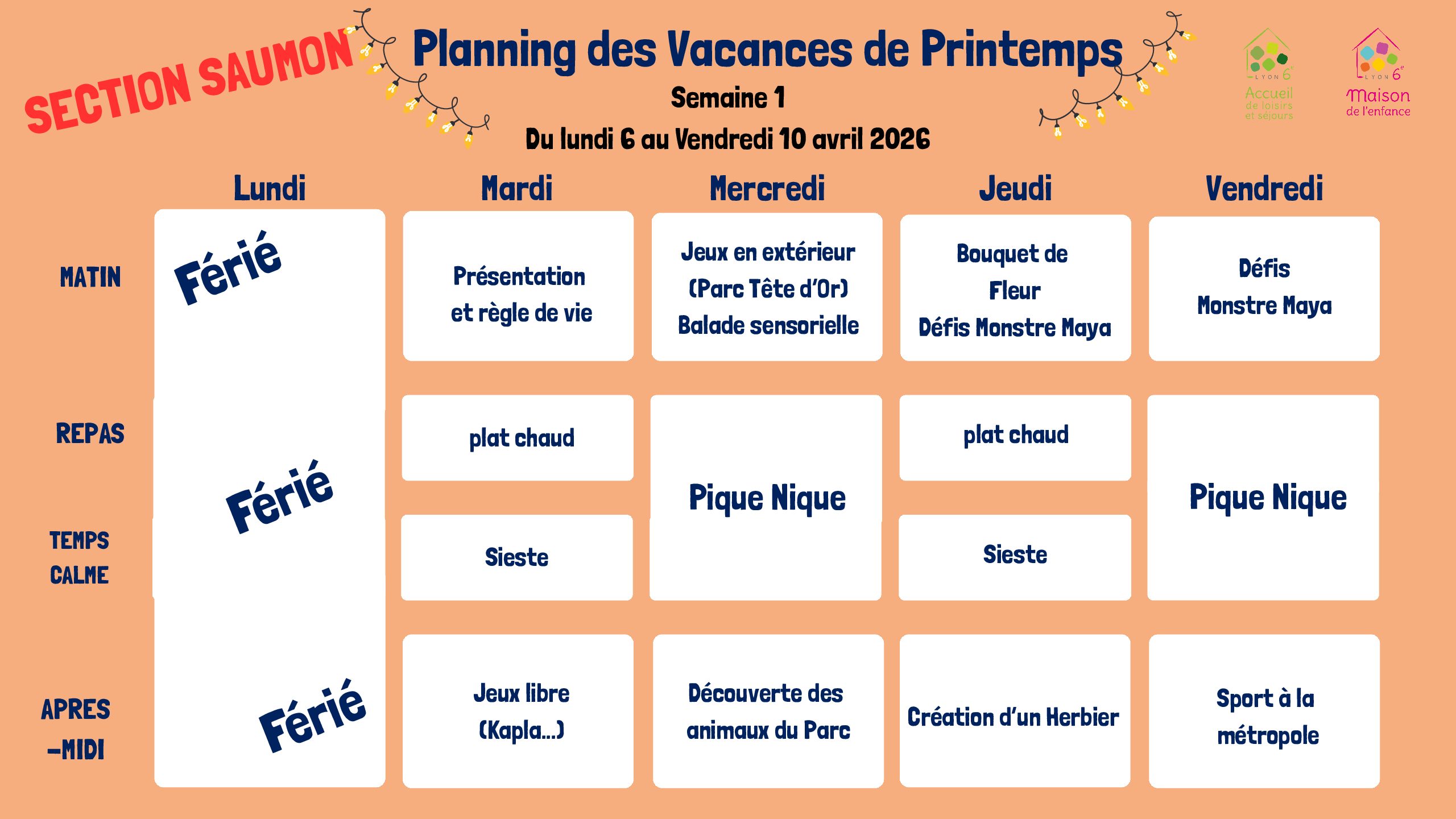 PROGRAMME SEMAINE DU 7 AVRIL AU 10 AVRIL SECTION SAUMON (5 ans )